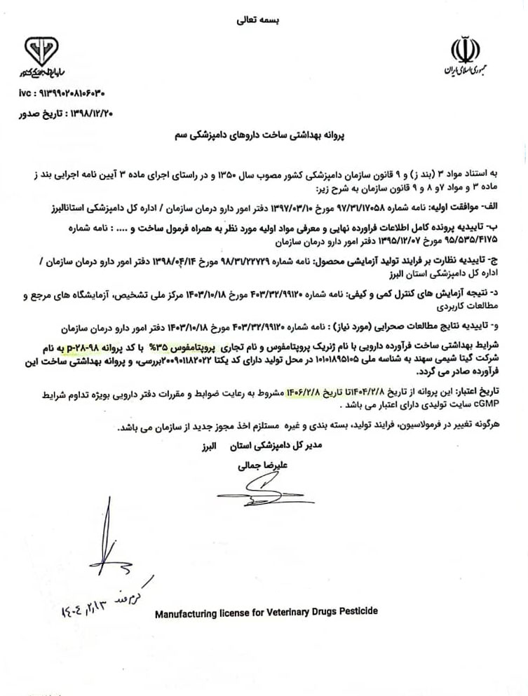 گستره محصولات تخصصی ما، پاسخگوی نیازهای سلامت گیاهان و دامها با کیفیت برتر است.